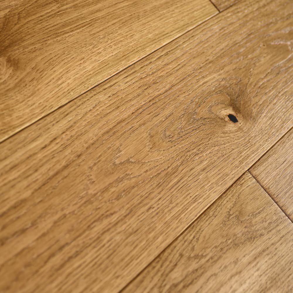 Верхний лицевой слой - это срез дуба. Древесина дуба отличается прочностью, крепостью, плотностью, твёрдостью и тяжестью. Толщина верхнего слоя предоставляет возможность неоднократно шлифовать напольное покрытие.