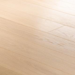 Верхний лицевой слой - это срез дуба. Древесина дуба отличается прочностью, крепостью, плотностью, твёрдостью и тяжестью. Толщина верхнего слоя предоставляет возможность неоднократно шлифовать напольное покрытие.