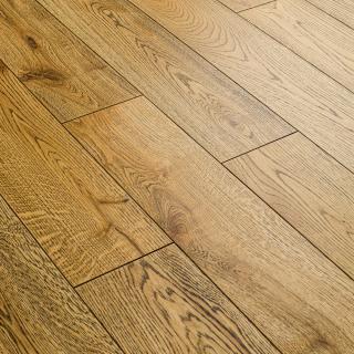 Верхний лицевой слой - это срез дуба. Древесина дуба отличается прочностью, крепостью, плотностью, твёрдостью и тяжестью. Толщина верхнего слоя предоставляет возможность неоднократно шлифовать напольное покрытие.
