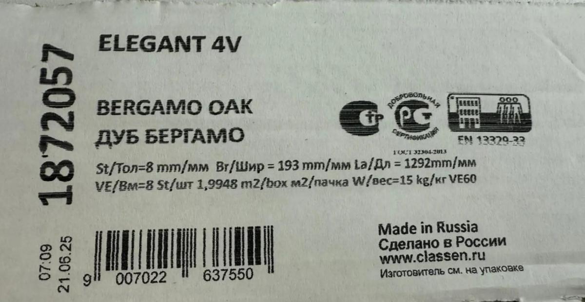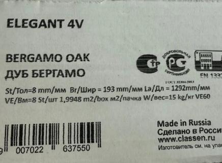 Ламинат Classen Elegant долговечный: срок эксплуатации в жилом помещении 25 лет.