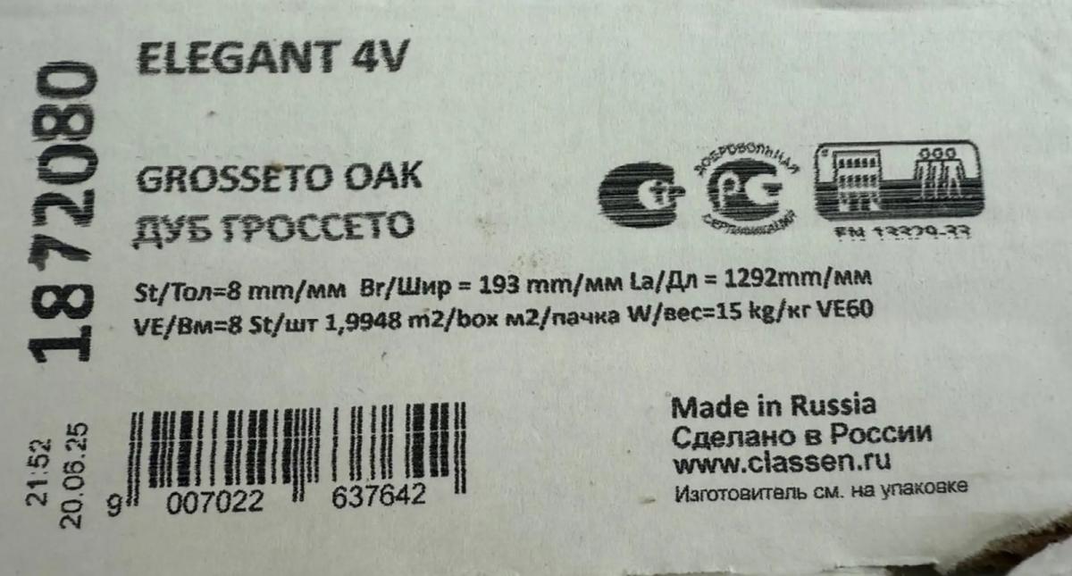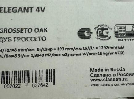 Ламинат Classen Elegant долговечный: срок эксплуатации в жилом помещении 25 лет.