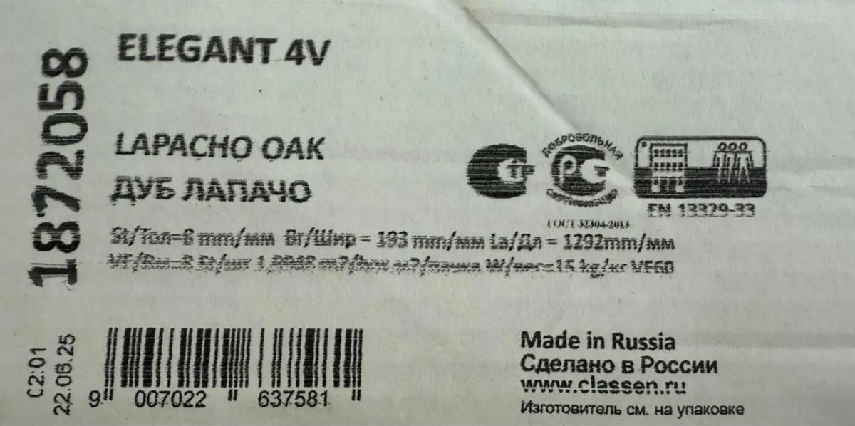 • Ламинат Classen Elegant долговечный: срок эксплуатации в жилом помещении 25 лет.