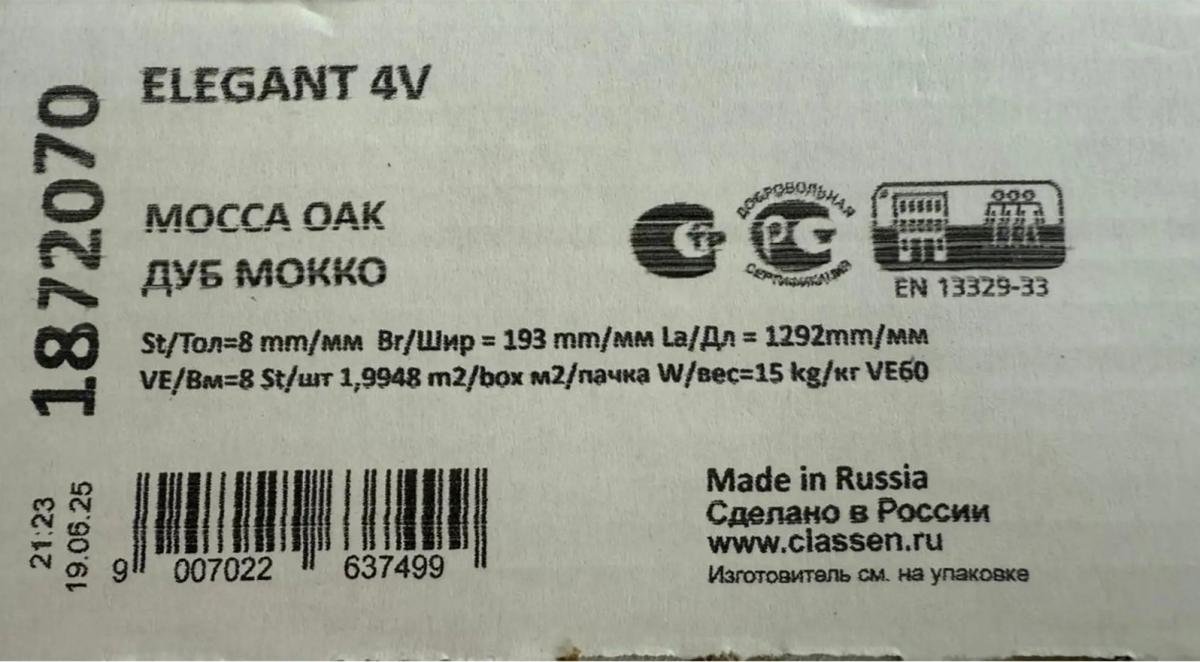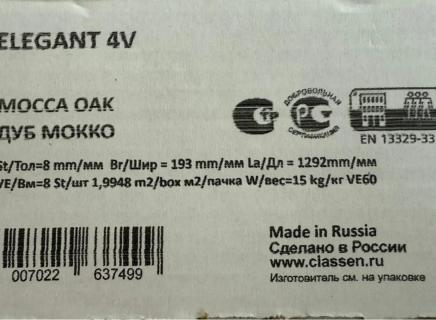 Ламинат Classen Elegant долговечный: срок эксплуатации в жилом помещении 25 лет.
