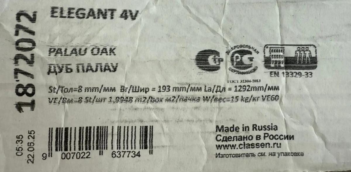 Ламинат Classen Elegant долговечный: срок эксплуатации в жилом помещении 25 лет.