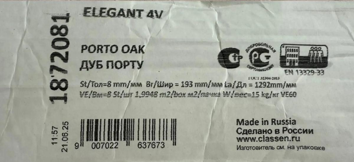 Ламинат Classen Elegant долговечный: срок эксплуатации в жилом помещении 25 лет.