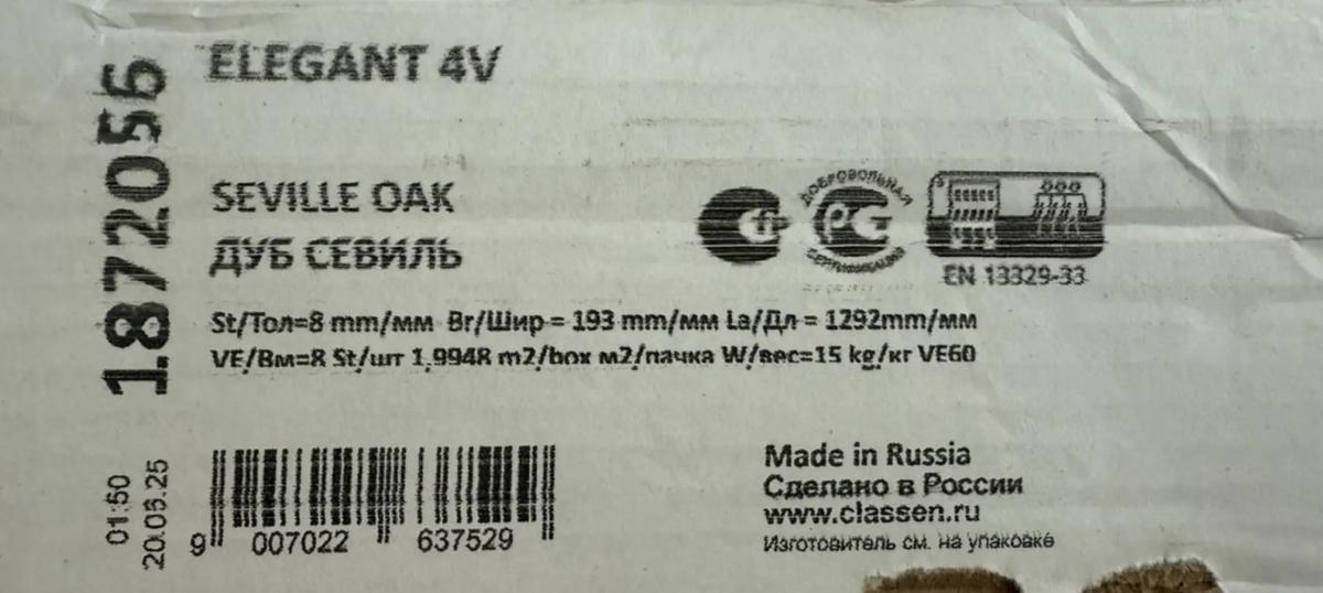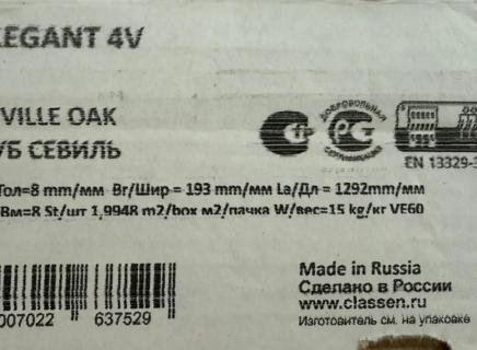 Ламинат Classen Elegant долговечный: срок эксплуатации в жилом помещении 25 лет.