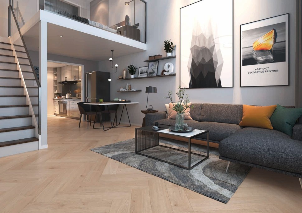 Бесклеевой замок Мegaloc twin. В отличие от обычных полов в елочку, Classen Manor не требует левых и правых досок и состоит исключительно из досок A;