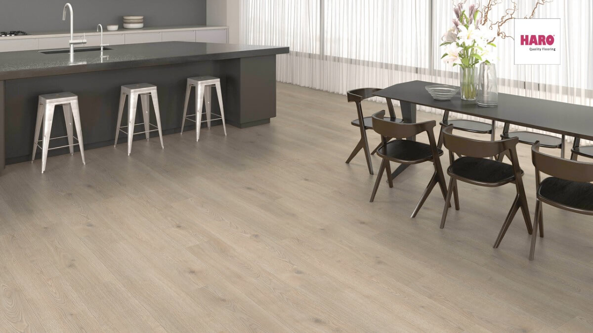 Ламинат Haro Tritty 200 Aqua 4V Дуб Контура Каменно-Серый 540 239 создаст в помещении уютную и теплую атмосферу.