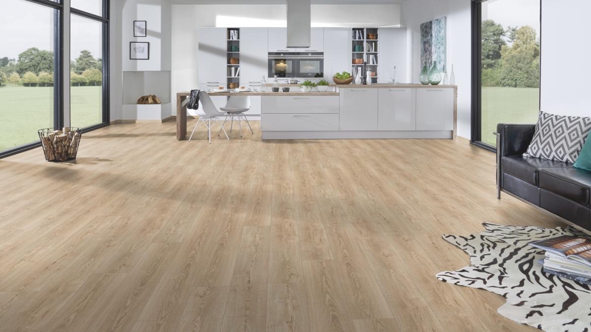 Ламинат Kronospan Super Natural Classic Natural Sterling Oak K485 практически не отличается от натурального паркета, благодаря своей уникальной структуре и внешнему виду с выделенными мерцающими полосками.