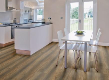 Подходит для влажных помещений. Древесина из смолистой бранденбургской сосны и особый способ нанесения клея надежно защитит пол от набухания;