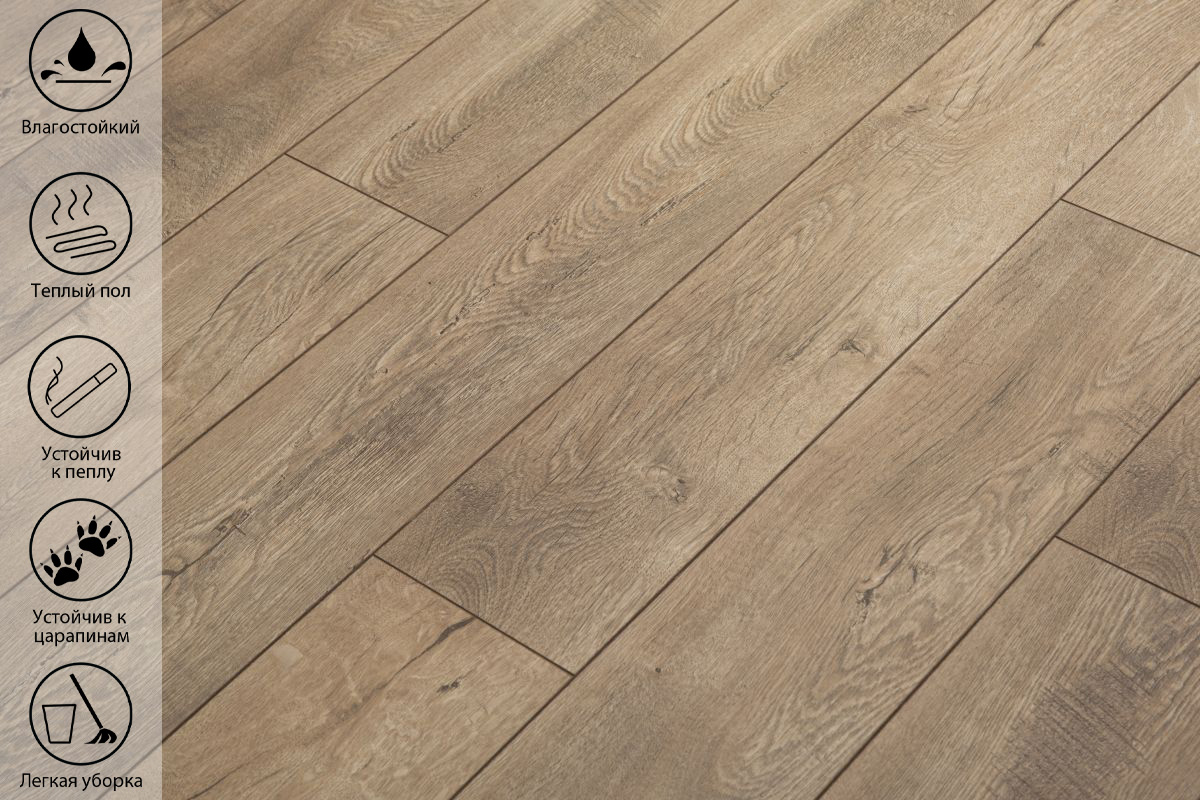 Влагостойкий. Ламинат не подвержен воздействию влаги за счет специальной обработки поверхности;
