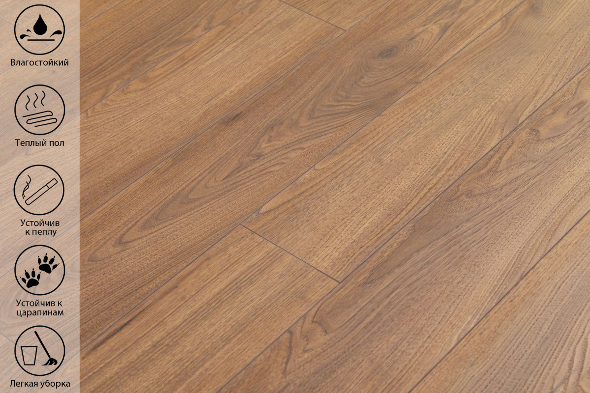 Влагостойкий. Ламинат не подвержен воздействию влаги за счет специальной обработки поверхности;