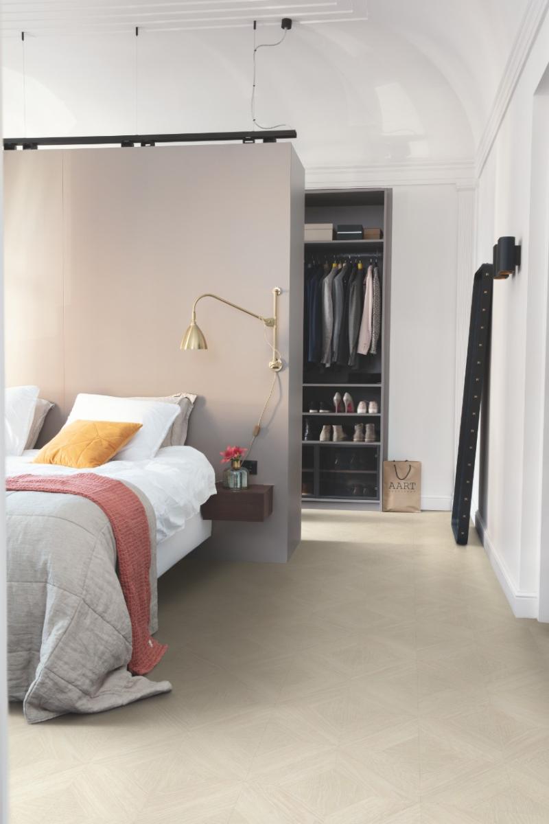 Ламинат Quick-Step Impressive Patterns Ultra Дуб палаццо белый IPU4501 выполнен в стиле модульного паркета, который отлично выглядит как на больших площадях, так и на маленьких.