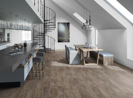 Ламинат Tarkett CINEMA Тейлор выполнен в винтажном стиле и уникальность покрытия состоит в эффектах обработки его покрытия.