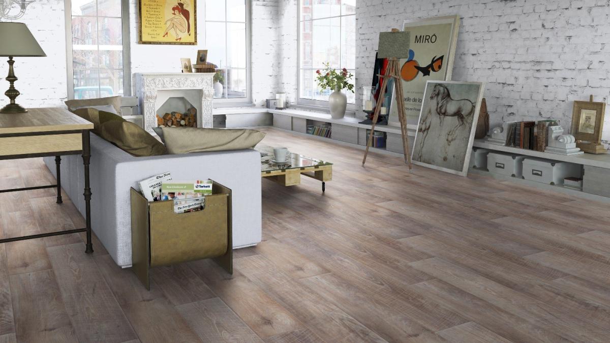 Ламинат Tarkett CINEMA Вивьен выполнен в винтажном стиле и уникальность покрытия состоит в эффектах обработки его покрытия.