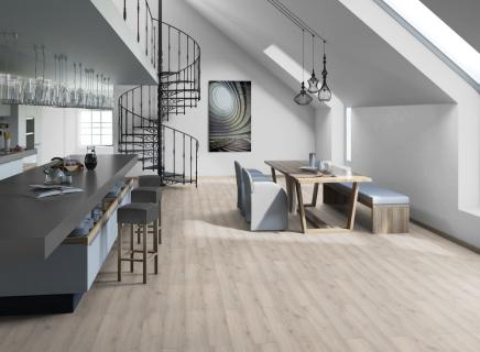 Ламинат Tarkett Cruise Costa представлен в формате узкий доски, которая визуально расширяет пространство. Идеально подойдет для небольших комнат.