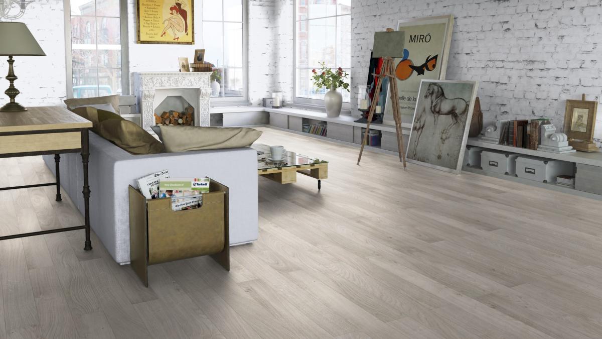 Ламинат Tarkett Gallery Да Винчи. Если Вы хотите визуально расширить пространство комнаты, то этот вариант узкой доски идеально подойдет для Вас.
