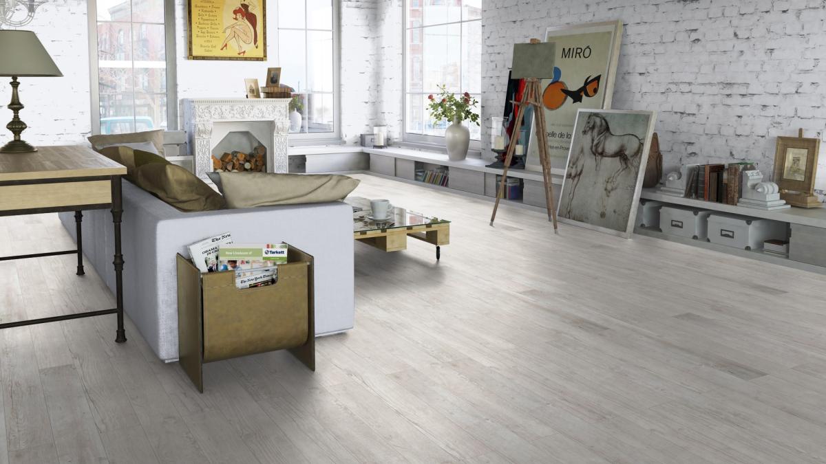Ламинат Tarkett Gallery Моне. Если Вы хотите визуально расширить пространство комнаты, то этот вариант узкой доски идеально подойдет для Вас.