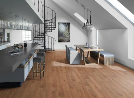 Древесина дуба отличается прочностью, крепостью, плотностью, твёрдостью и тяжестью. Паркетная доска Tarkett Step XL является натуральным природным материалом, соответственно, каждая отдельная доска уникальна по своей текстуре и цвету.