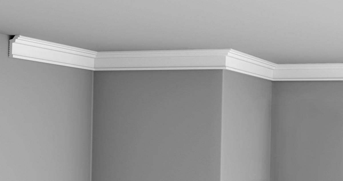 Плинтус Glanzepol Экструзионный потлочный гладкий GPX-1 изготовлен из полистирола высокой плотности экструзивным методом. Технология производства позволяет создавать изделия с отличным качеством поверхности.