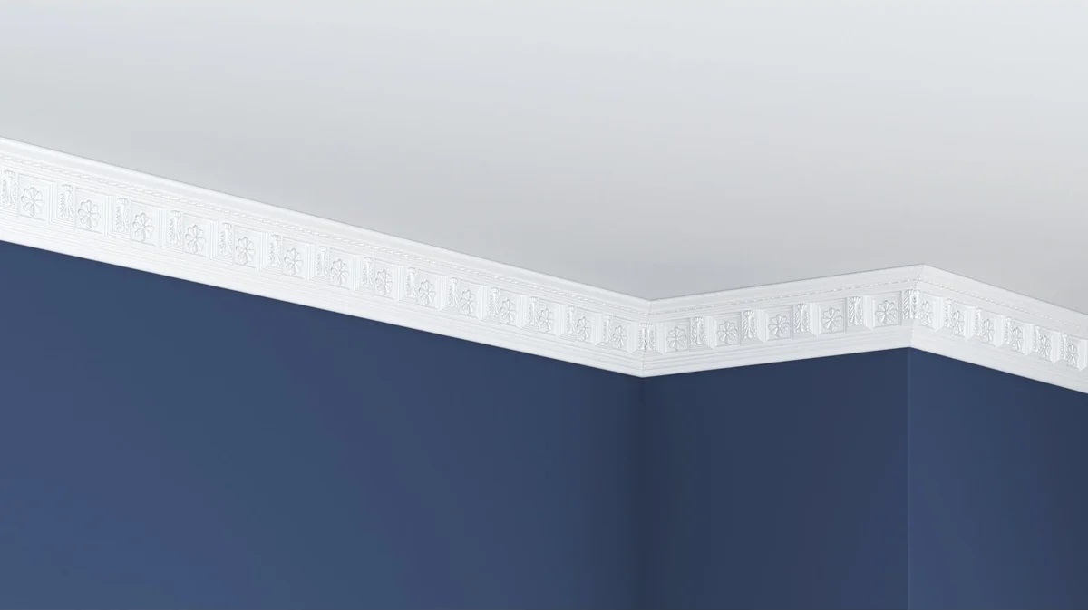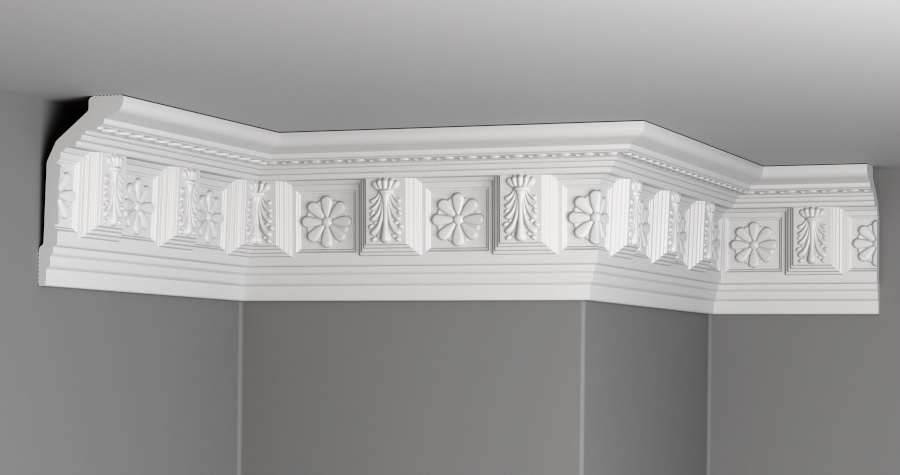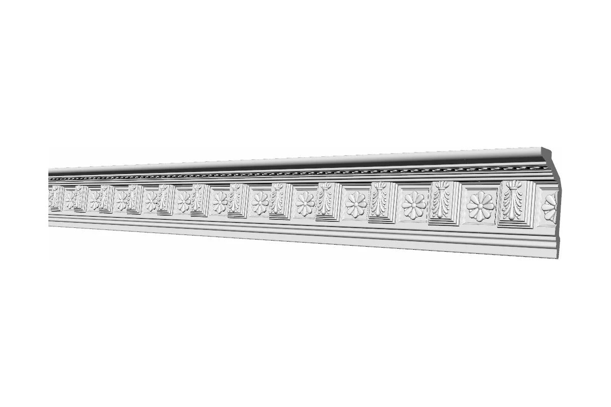 Плинтус Glanzepol инжекционный потолочный с орнаментом GP-7 изготовлен из полистирола повышенной плотности методом инжекции. Технология производства позволяет создавать изделия с идеально ровной поверхностью, чётким узором и высокой геометрической точностью.