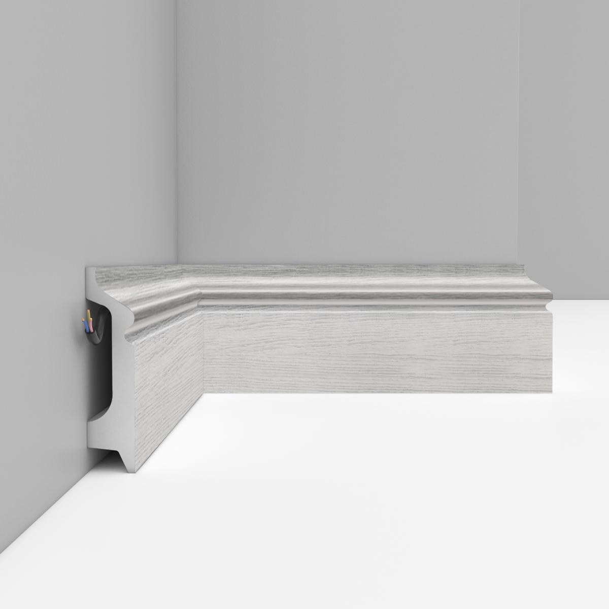 Плинтус напольный Decomaster D122-84 78х21 мм произведен из дюрополимера с высококачественным нанесённым декором. Дюрополимер – это вспененный композитный полимер получаемый из пенополистирола под высоким давлением.