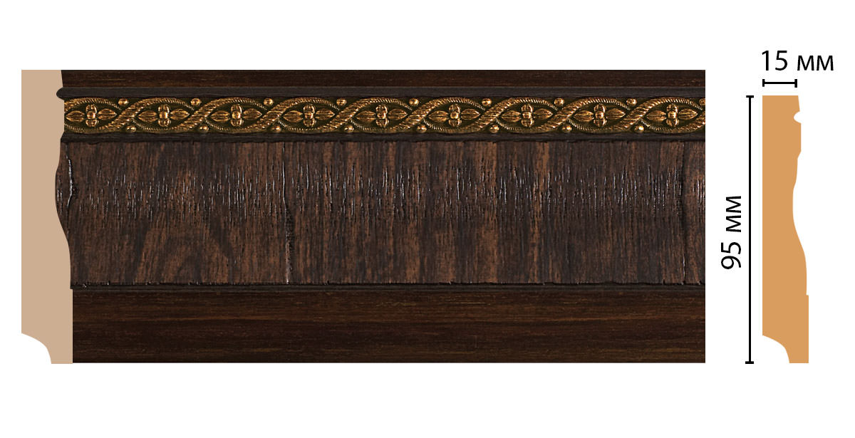 Плинтус напольный Decomaster D153-1 95х12 мм произведен из дюрополимера с высококачественным нанесённым декором. Дюрополимер – это вспененный композитный полимер получаемый из пенополистирола под высоким давлением.