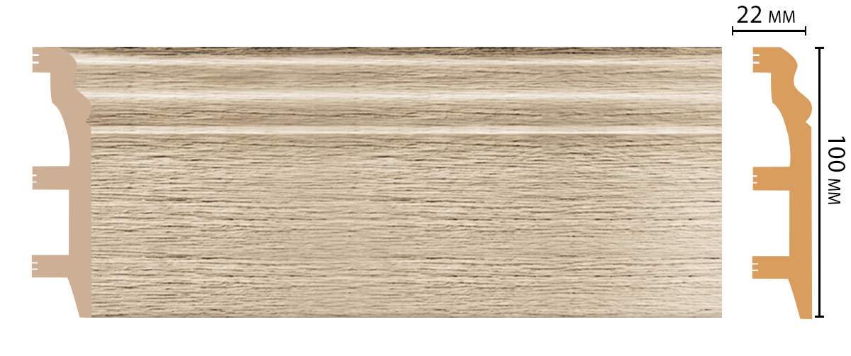 Плинтус напольный Decomaster D232-72 100х22 мм произведен из дюрополимера с высококачественным нанесённым декором. Дюрополимер – это вспененный композитный полимер получаемый из пенополистирола под высоким давлением.