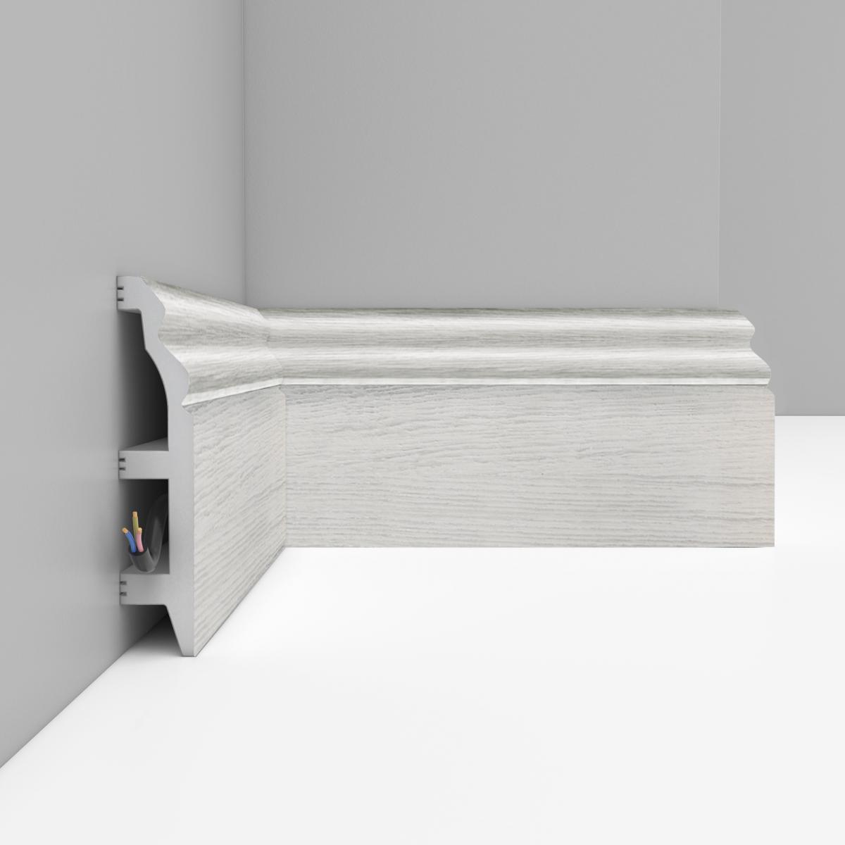 Плинтус напольный Decomaster D232-84 100х22 мм произведен из дюрополимера с высококачественным нанесённым декором. Дюрополимер – это вспененный композитный полимер получаемый из пенополистирола под высоким давлением.