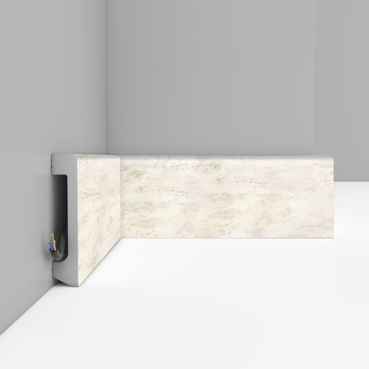 Плинтус напольный Decomaster D235 1633 80х17 мм произведен из дюрополимера с высококачественным нанесённым декором. Дюрополимер – это вспененный композитный полимер получаемый из пенополистирола под высоким давлением.