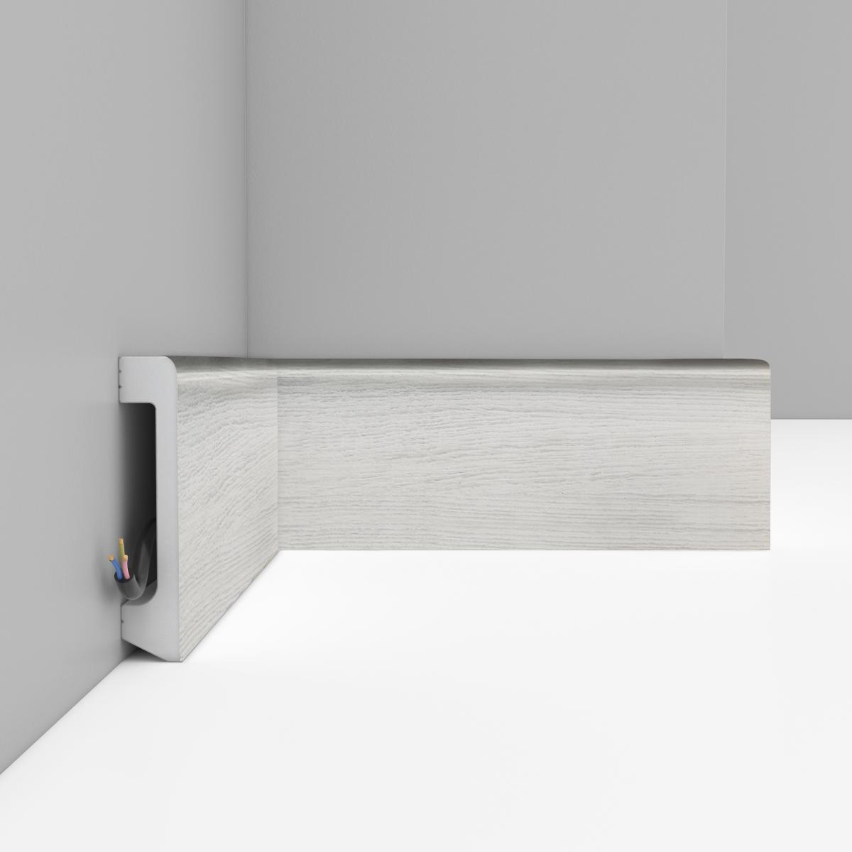 Плинтус напольный Decomaster D235-84 80х17 мм произведен из дюрополимера с высококачественным нанесённым декором. Дюрополимер – это вспененный композитный полимер получаемый из пенополистирола под высоким давлением.