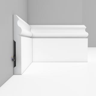 Плинтус напольный Decomaster Под покраску A035 141х15 мм произведен из дюрополимера – это вспененный композитный полимер получаемый из пенополистирола под высоким давлением.