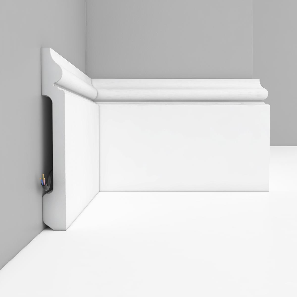 Плинтус напольный Decomaster Под покраску D118 138х18 мм произведен из дюрополимера – это вспененный композитный полимер получаемый из пенополистирола под высоким давлением.