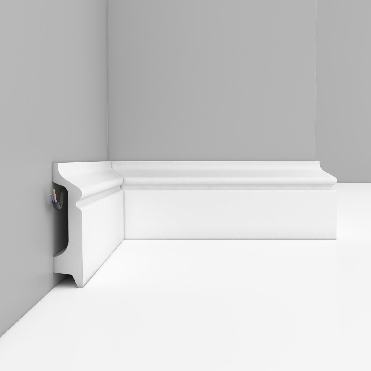 Плинтус напольный Decomaster Под покраску D122 78х21 мм произведен из дюрополимера – это вспененный композитный полимер получаемый из пенополистирола под высоким давлением.