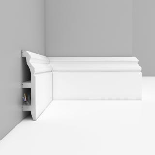 Плинтус напольный Decomaster Под покраску D232 100х22 мм произведен из дюрополимера – это вспененный композитный полимер получаемый из пенополистирола под высоким давлением.