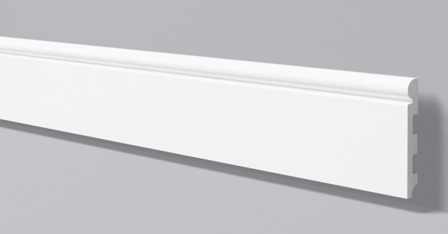 Плинтус NMC Wallstyl FL4 произведен из дюрополимера – это вспененный композитный полимер получаемый из пенополистирола под высоким давлением.