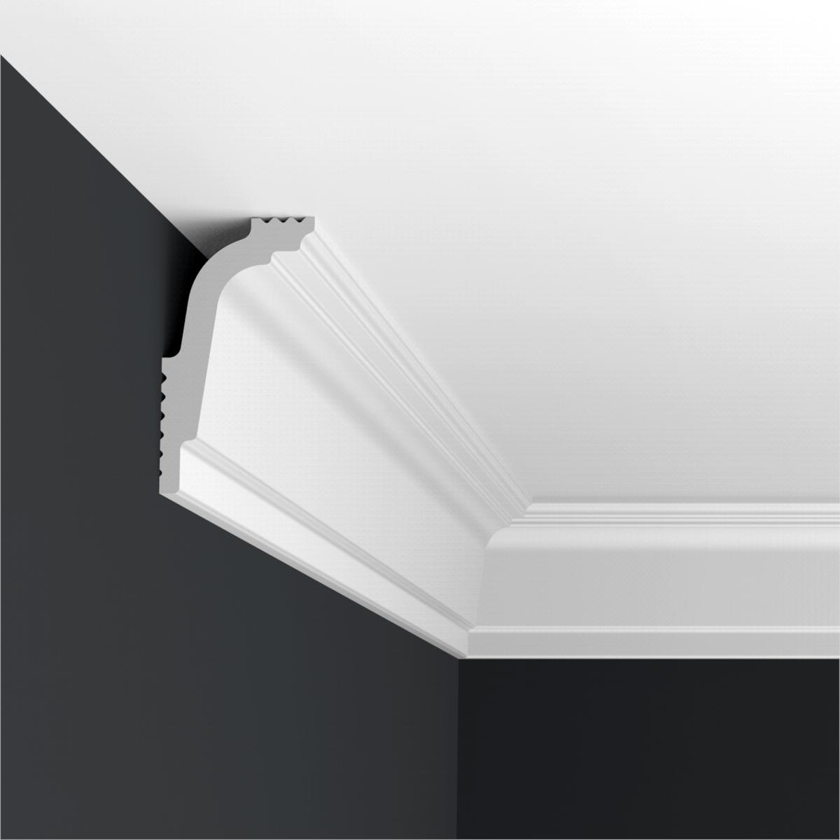 Потолочный плинтус дюрополимер Формат 06011D произведен из дюрополимера – это вспененный композитный полимер получаемый из пенополистирола под высоким давлением.