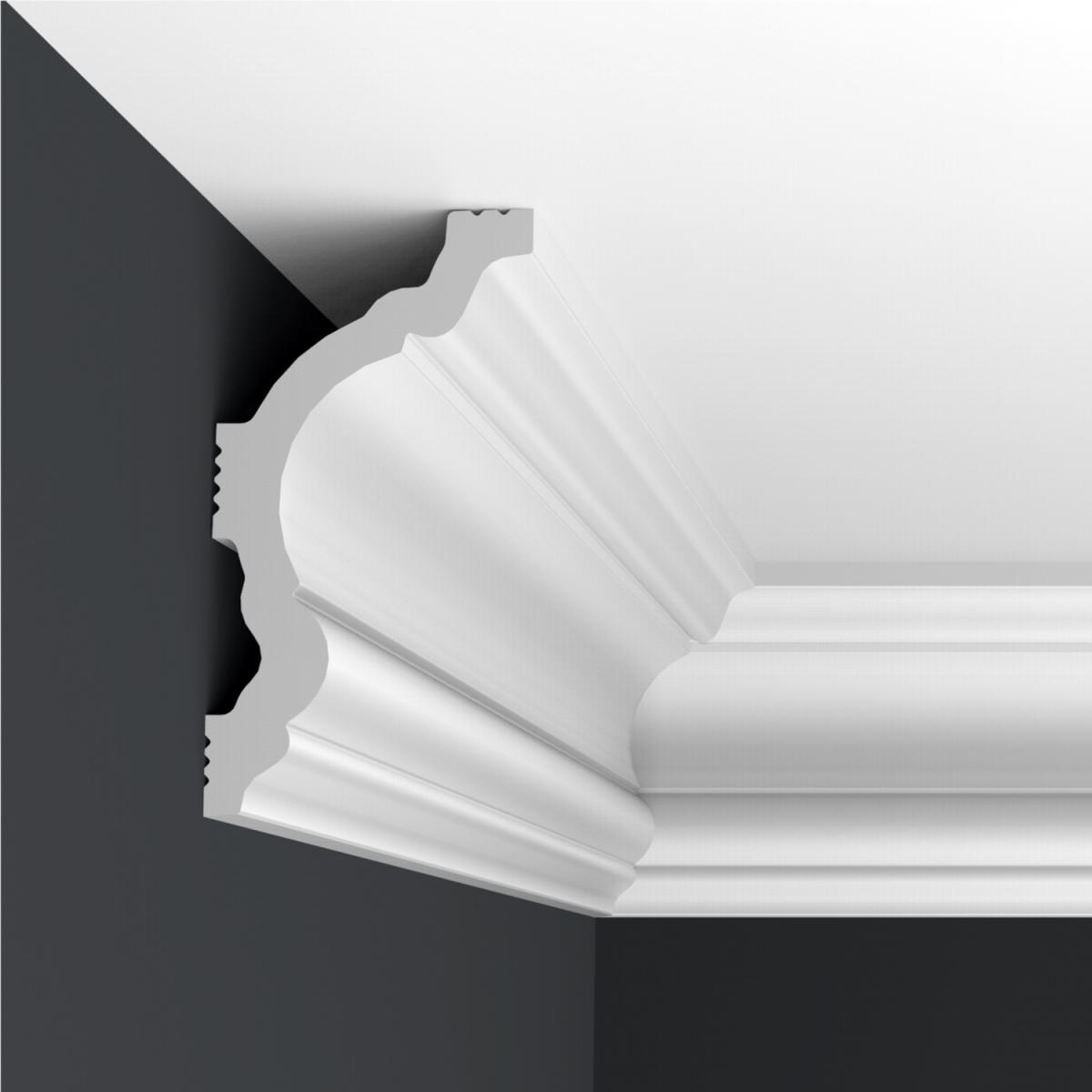 Потолочный плинтус дюрополимер Формат 09002D произведен из дюрополимера – это вспененный композитный полимер получаемый из пенополистирола под высоким давлением.