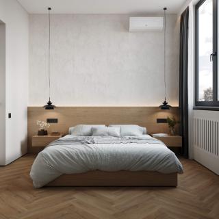 ПВХ плитка Floorwood Authentic Песчаные дюны 6345 - универсальное напольное покрытие с привлекательной структурой под дерево, которое укладывается ёлочкой.