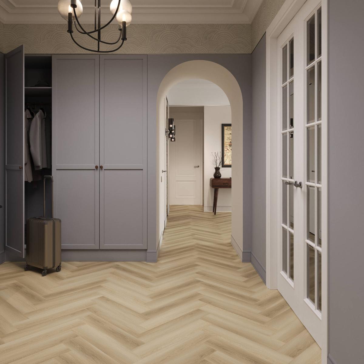 ПВХ плитка Floorwood Authentic Таинственная звезда 3661 - универсальное напольное покрытие с привлекательной структурой под дерево, которое укладывается ёлочкой.