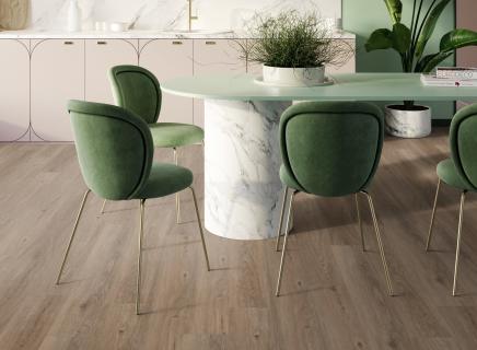 Основа LVT (Luxury Vinyl Tile) - это винил высокого качества, мягкий и приятный на ощупь, по которому комфортно ходить даже босиком, а звукопоглощающие качества обеспечат отсутствие шума, как в самом помещении, так и для соседей снизу;
