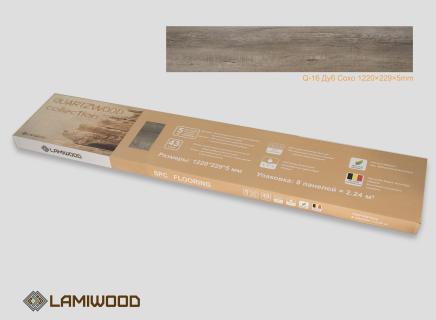 ПВХ плитка Lamiwood Quartzwood Дуб Сохо Q-16 представлена в широком формате доски.