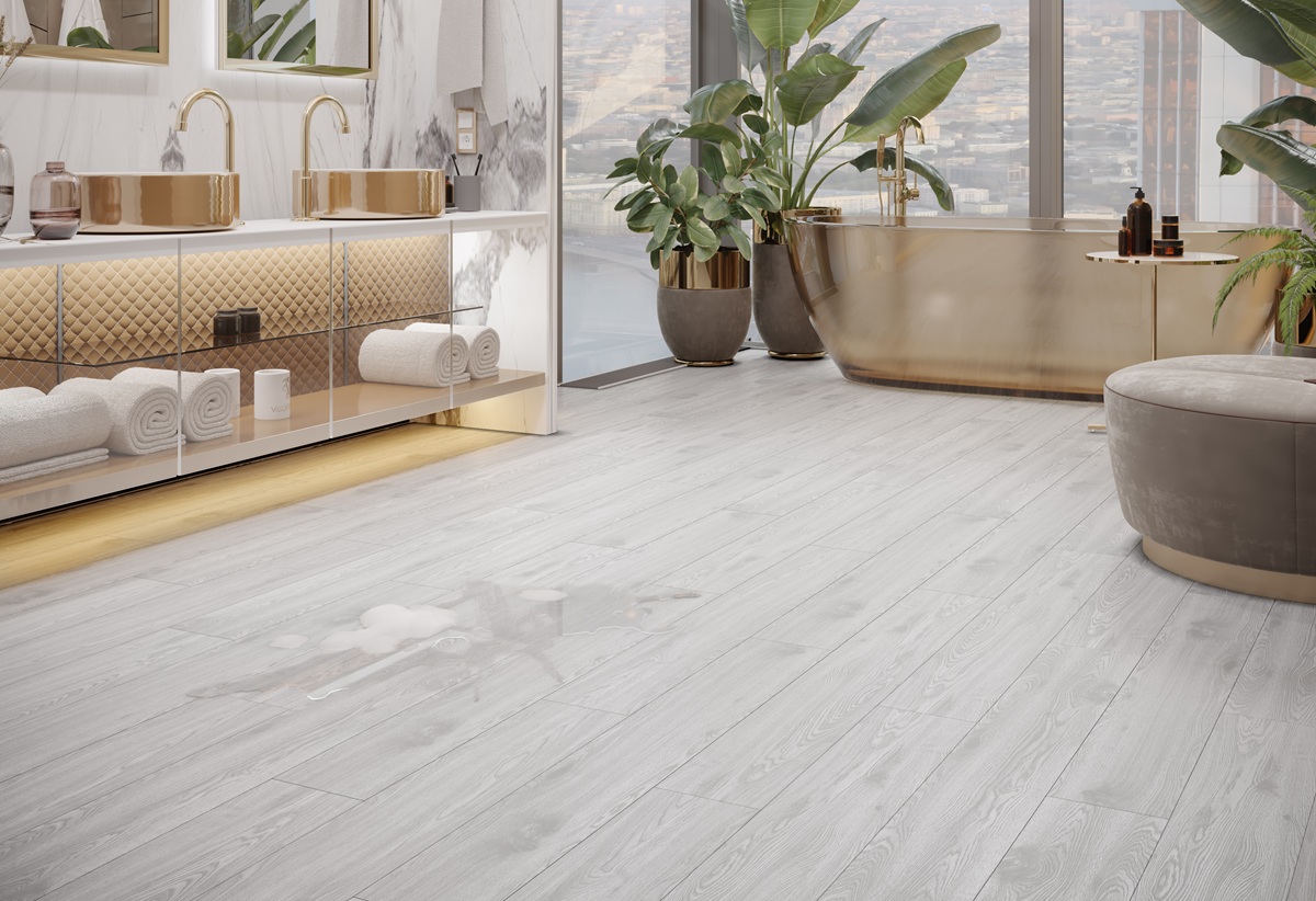 100% водостойкая - можно укладывать в помещения с повышенной влажностью, при этом пол не будет набухать или деформироваться под воздействием влаги;