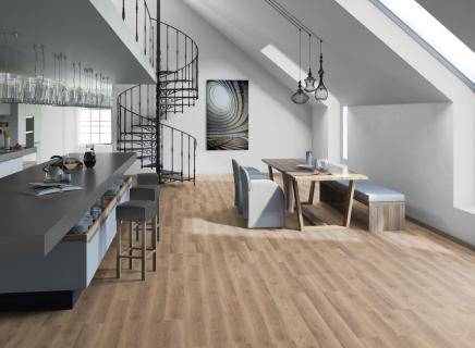 Основа LVT (Luxury Vinyl Tile) - это винил высокого качества, мягкий и приятный на ощупь, по которому комфортно ходить даже босиком, а звукопоглощающие качества обеспечат отсутствие шума, как в самом помещении, так и для соседей снизу;