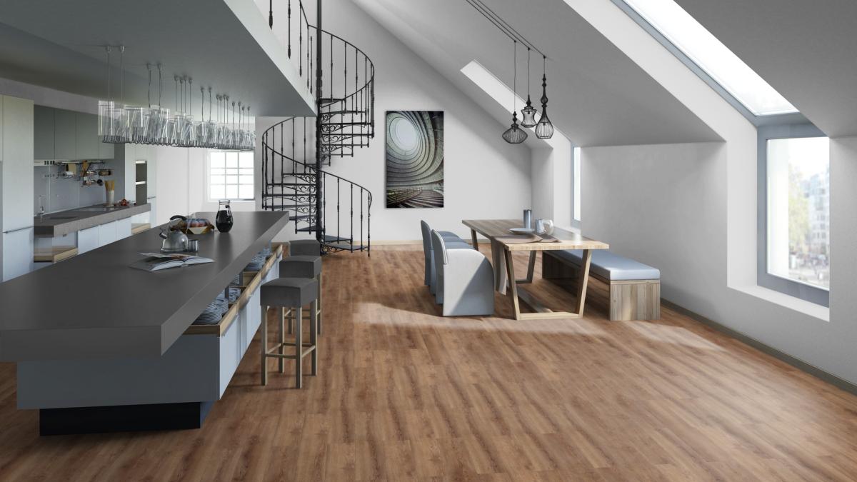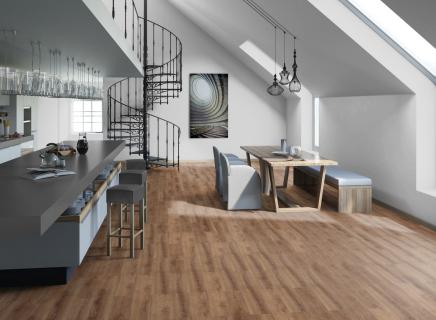 Основа LVT (Luxury Vinyl Tile) - это винил высокого качества, мягкий и приятный на ощупь, по которому комфортно ходить даже босиком, а звукопоглощающие качества обеспечат отсутствие шума, как в самом помещении, так и для соседей снизу;