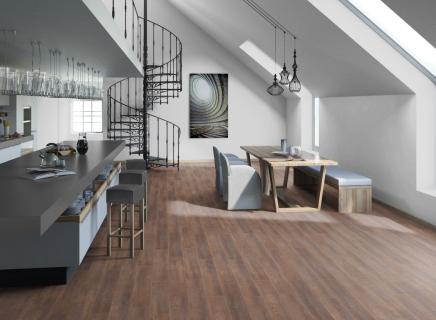 Основа LVT (Luxury Vinyl Tile) - это винил высокого качества, мягкий и приятный на ощупь, по которому комфортно ходить даже босиком, а звукопоглощающие качества обеспечат отсутствие шума, как в самом помещении, так и для соседей снизу;