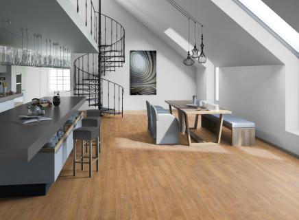 Основа LVT (Luxury Vinyl Tile) - это винил высокого качества, мягкий и приятный на ощупь, по которому комфортно ходить даже босиком, а звукопоглощающие качества обеспечат отсутствие шума, как в самом помещении, так и для соседей снизу;