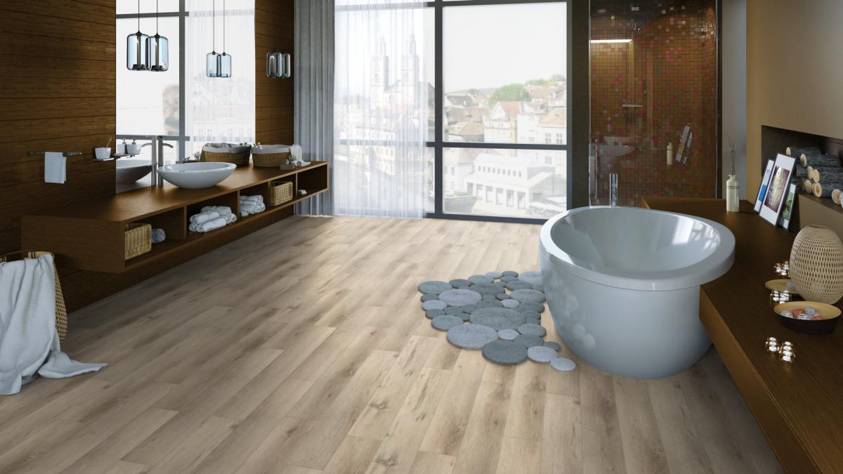 100% водостойкий - можно укладывать в помещения с повышенной влажностью, при этом пол не будет набухать или деформироваться под воздействием влаги;